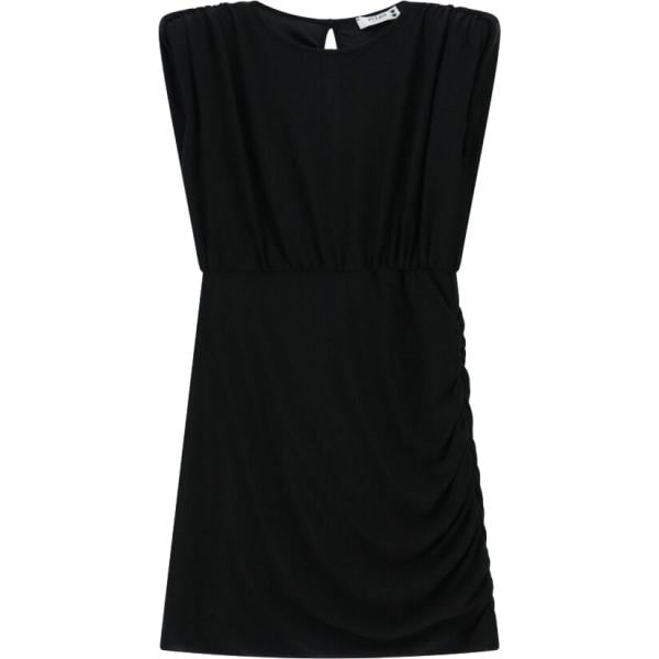 Vestito corto da donna in nero pece con ruches con scollo corto
