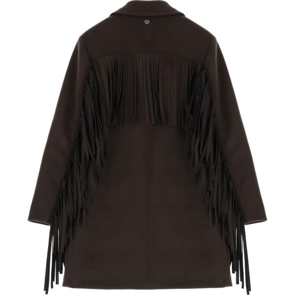 Cappotto da donna in nero pece con frange lungo