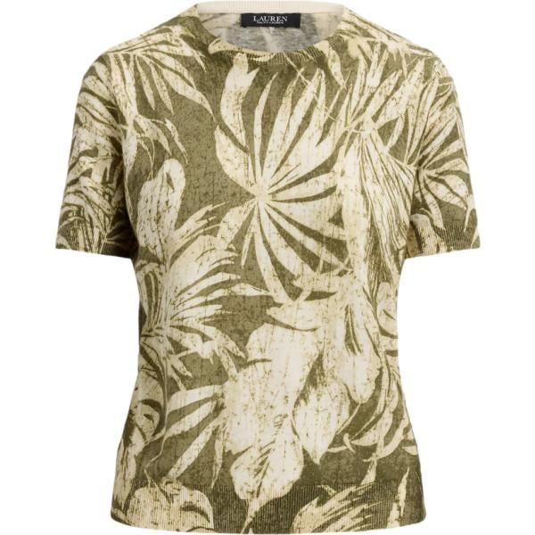 Top da donna in blu scuro con stampe con scollo a maniche corte