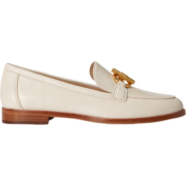 Mocassini da donna in bianco avorio con tacco in pelle