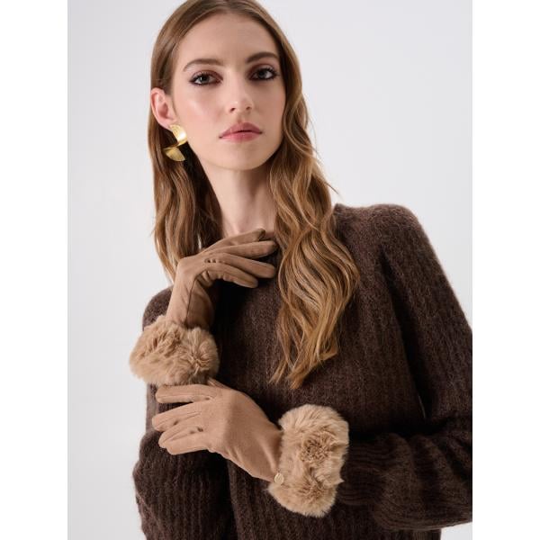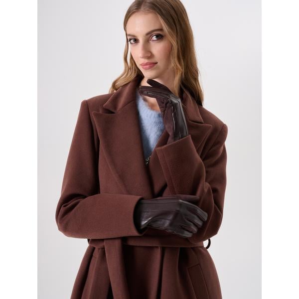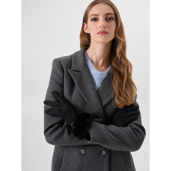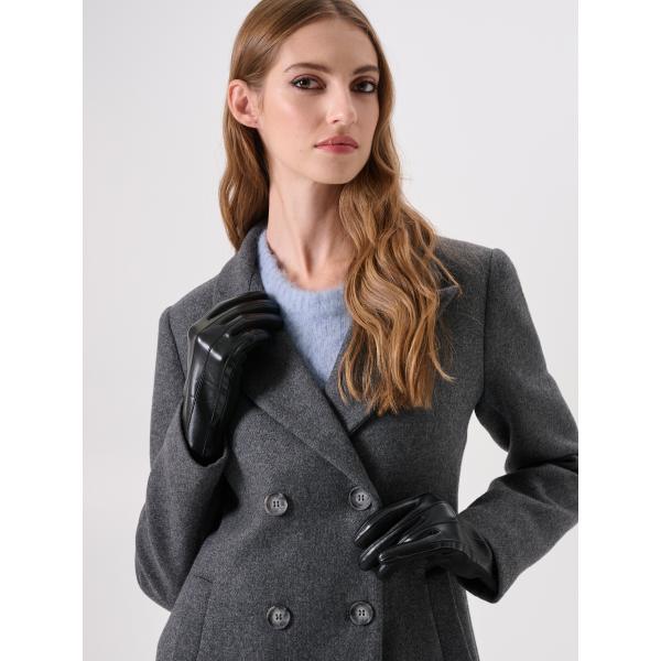 Guanti da donna intero in nero pece effetto scamosciato
