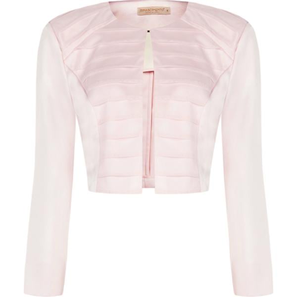 Bolero da donna in beige sabbia collo con revers corto a vita alta