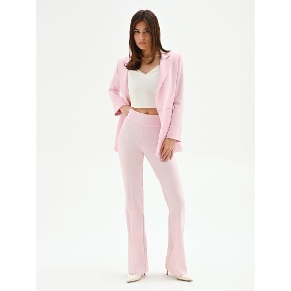 Pantaloni da donna intero in rosa scuro a vita alta con zip