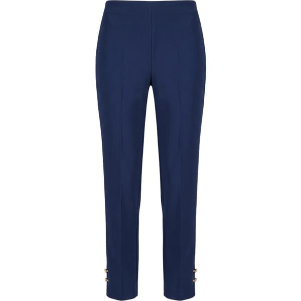 Pantaloni da donna in blu scuro cropped a vita media con zip