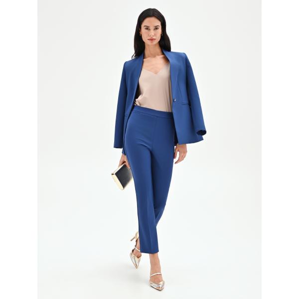 Pantaloni da donna intero in blu scuro cropped a vita media con zip