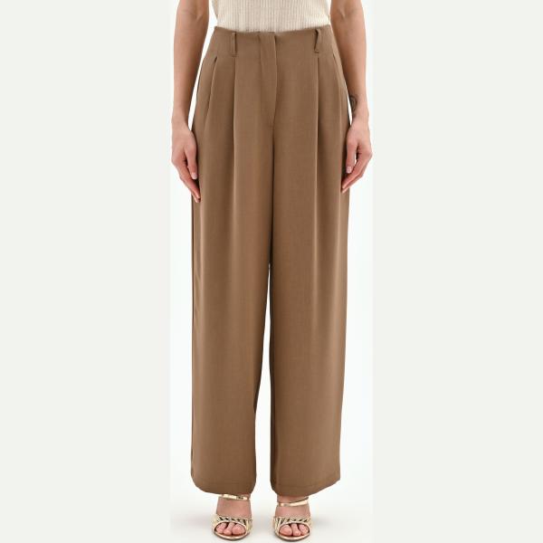 Pantaloni a palazzo da donna in marrone scuro a vita alta