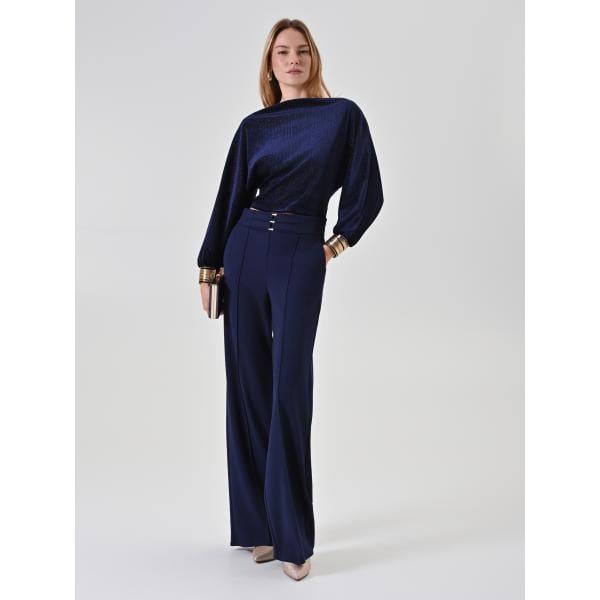 Pantaloni a palazzo da donna in blu scuro made in italy a vita alta con zip