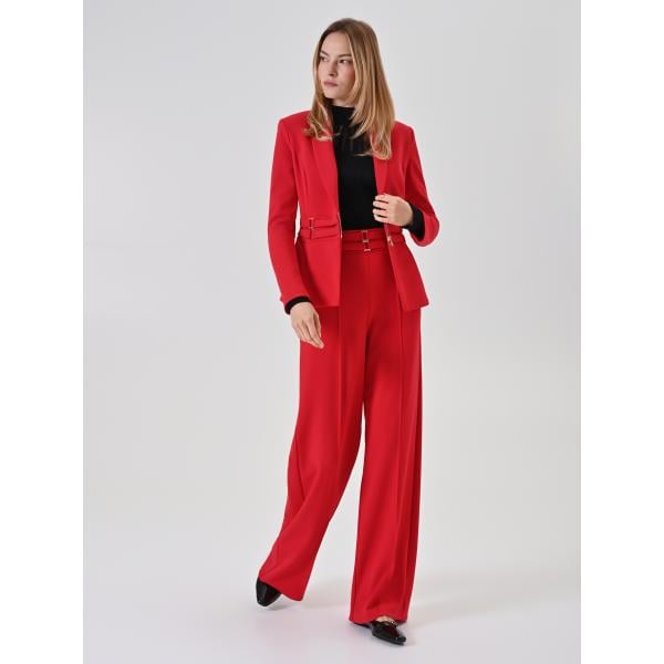 Pantaloni a palazzo da donna in rosso classico cropped con zip