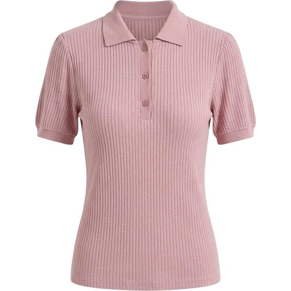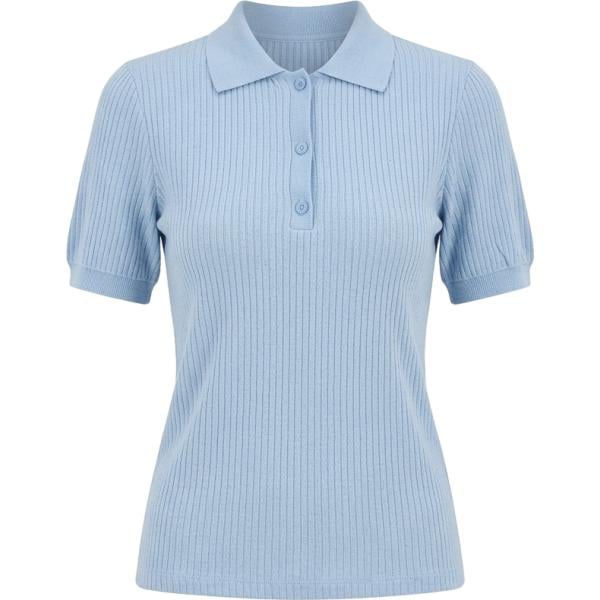 Polo da donna in azzurro lavorato a maglia collo classico a maniche corte in viscosa
