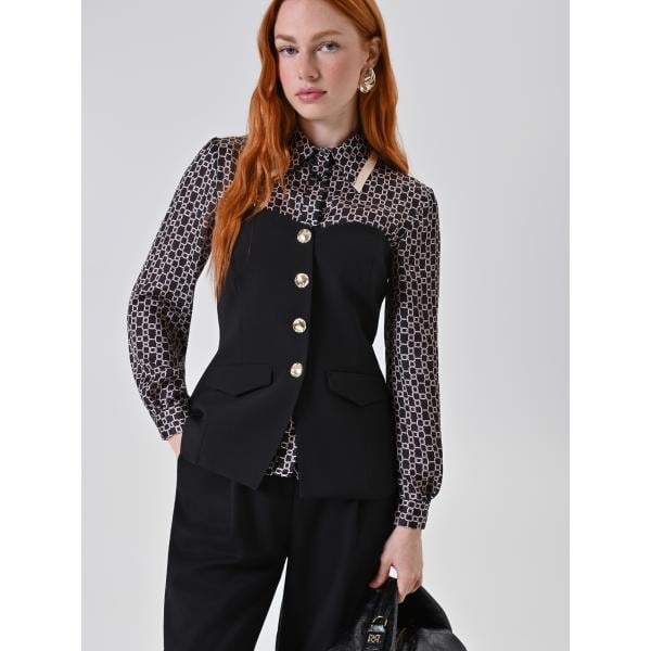 Top da donna in nero pece made in italy con bottoni in poliestere