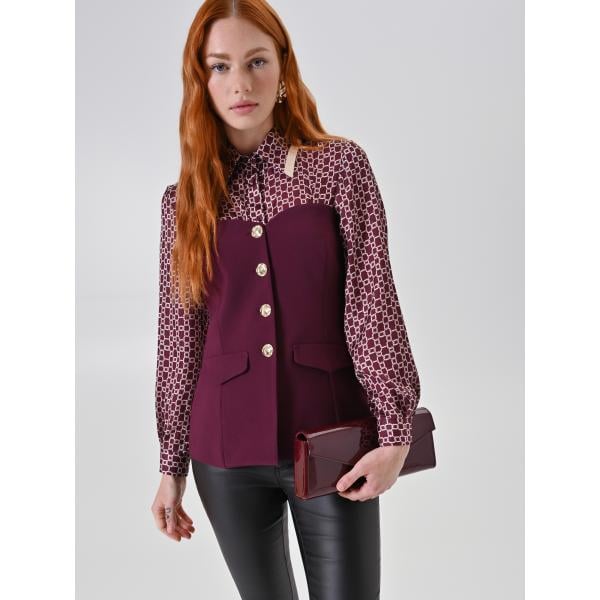 Top da donna in bordeaux made in italy con bottoni in poliestere