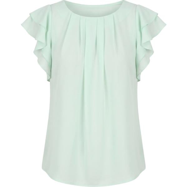 Canottiera da donna in verde scuro con ruches girocollo a maniche corte a vita alta