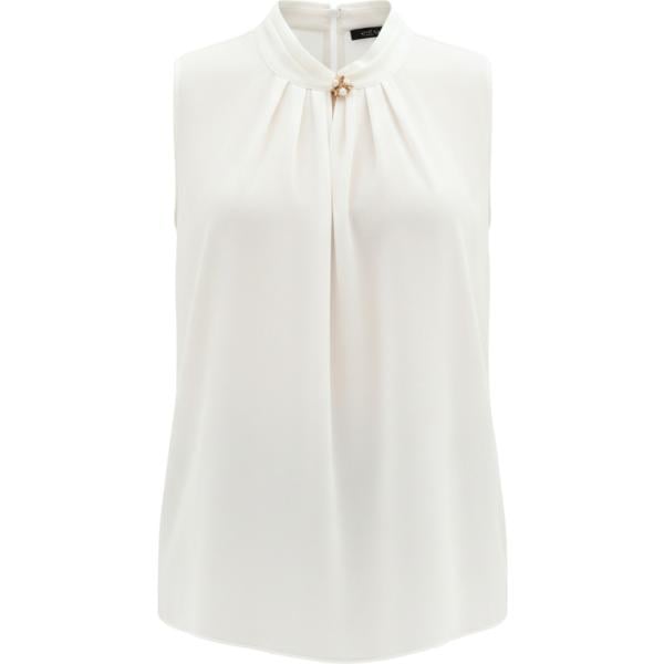 Top da donna forma svasata in bianco neve con fiocco con spalline lungo a vita alta