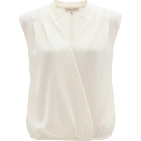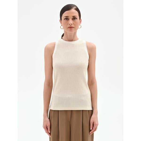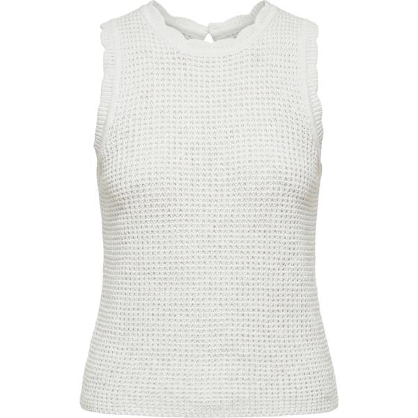Top da donna in bianco avorio a quadri lavorato a maglia con scollo lungo senza maniche