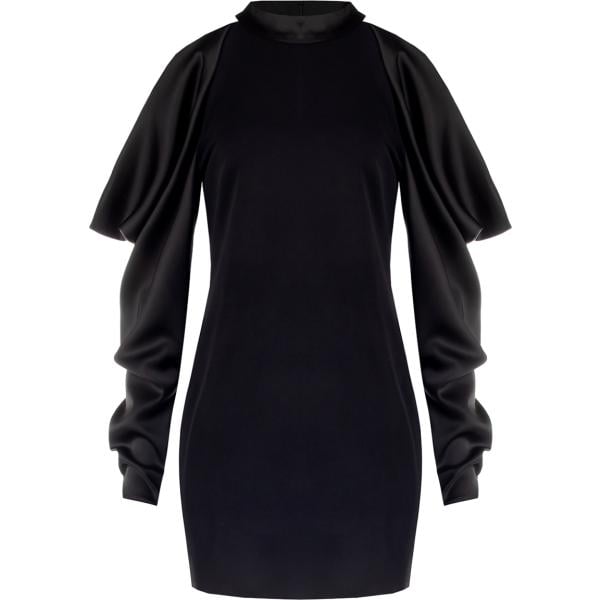 Vestito a tubino da donna in nero pece con ruches con spalline con zip in poliestere