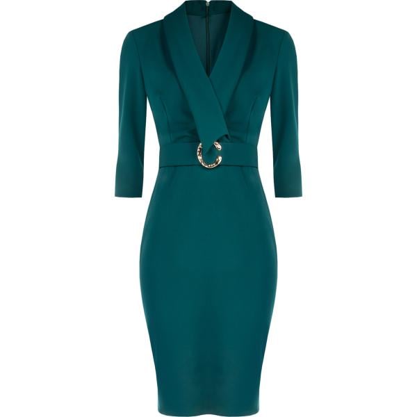 Vestito a tubino da donna in nero pece curvy con tacco collo a v a maniche lunghe con zip in viscosa