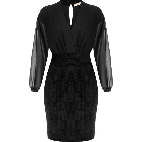 Vestito a tubino da donna in nero pece collo a v intimo con zip in poliestere