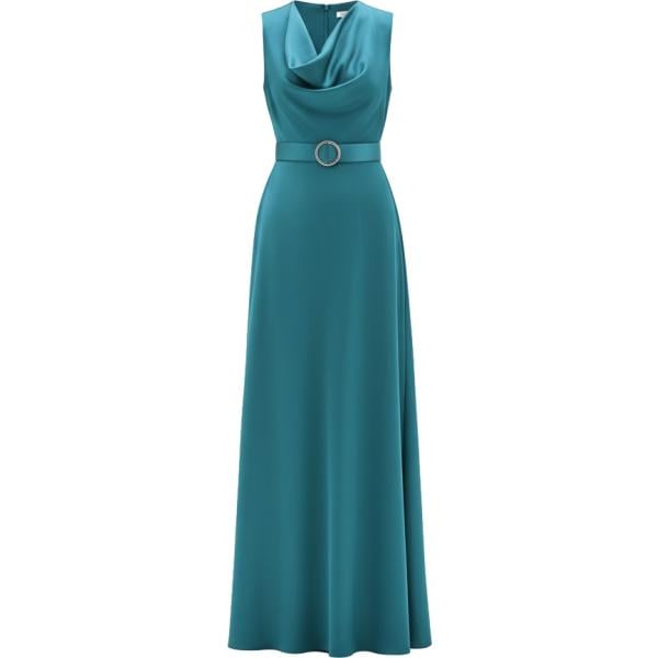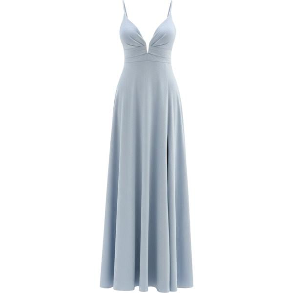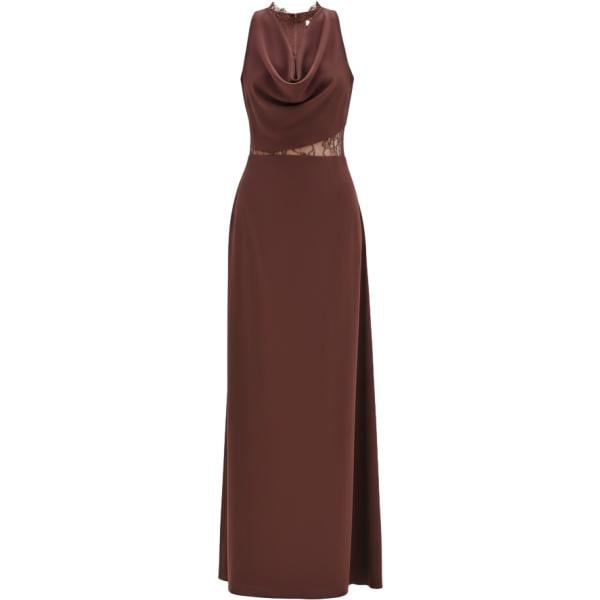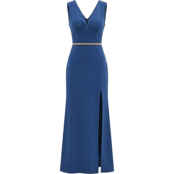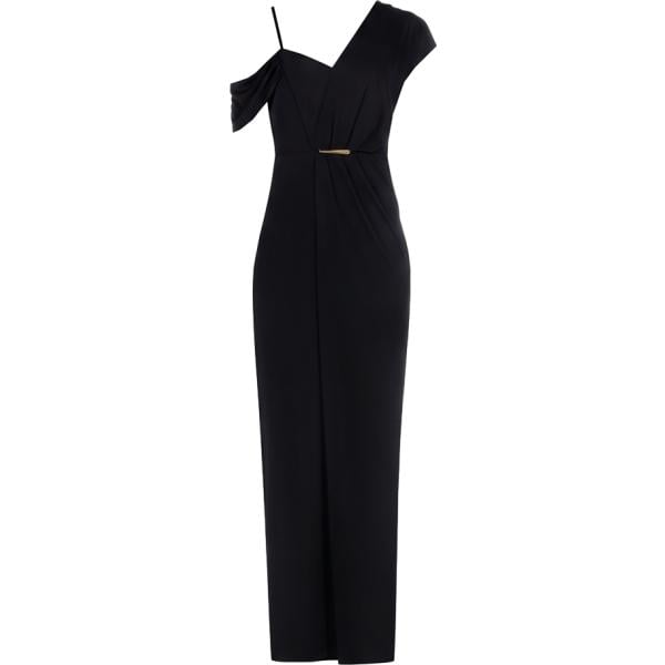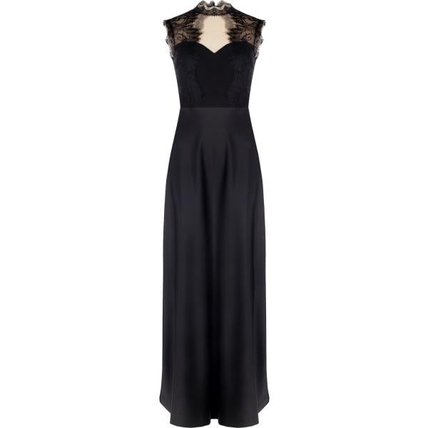 Vestito lungo da donna in nero pece con scollo con spacco con zip