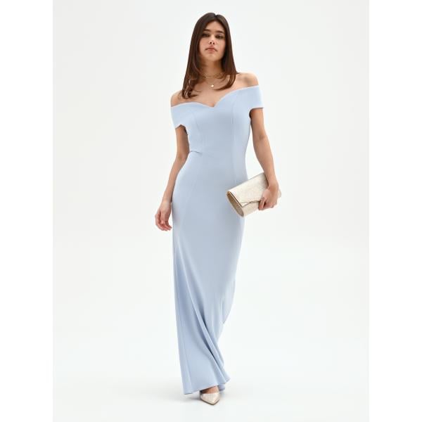 Vestito lungo da donna in azzurro con scollo made in italy con zip