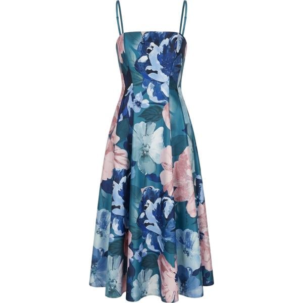 Vestito longuette/midi da donna in blu scuro con stampe con spalline con zip