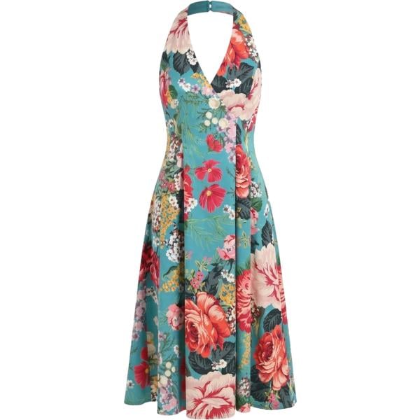 Vestito longuette/midi da donna in verde scuro a fiori con pizzo con scollo intimo con zip