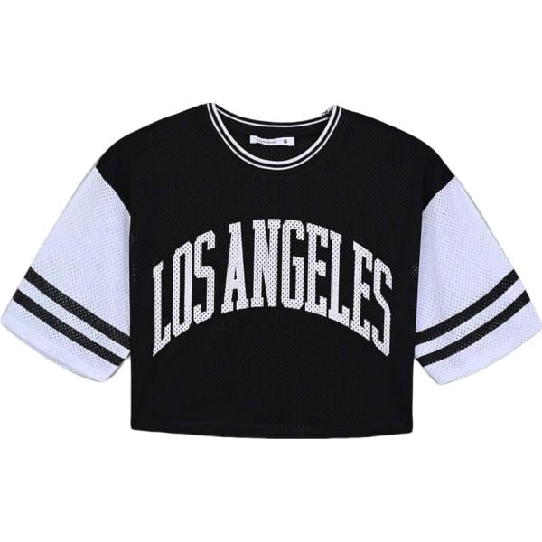 T-shirt da donna in nero pece con stampe girocollo a maniche corte