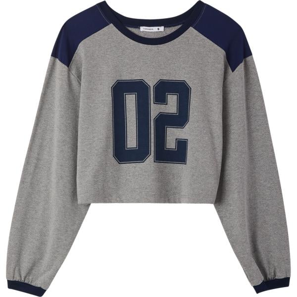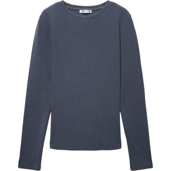 T-shirt da donna in blu scuro girocollo a maniche lunghe in poliestere