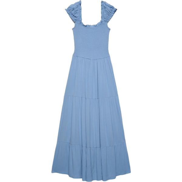 Vestito lungo da donna in nero pece con ruches con tacco lungo senza maniche