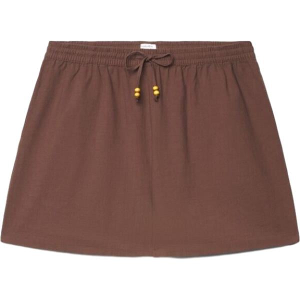 Shorts da donna in marrone scuro senza tasche con coulisse in cotone