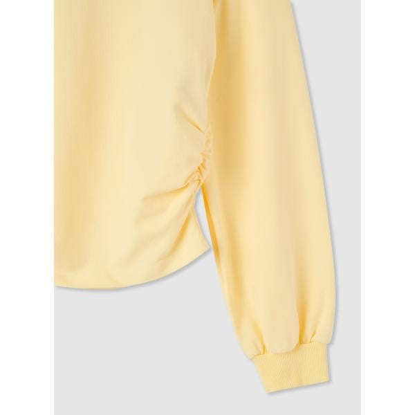 Felpa da donna in giallo chiaro collo senza cappuccio corto a maniche lunghe con zip in cotone