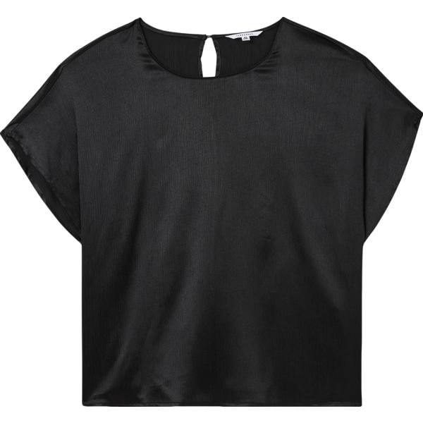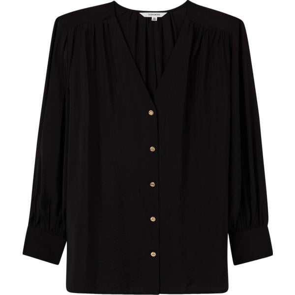 Blusa da donna in nero pece collo a v a maniche lunghe in viscosa