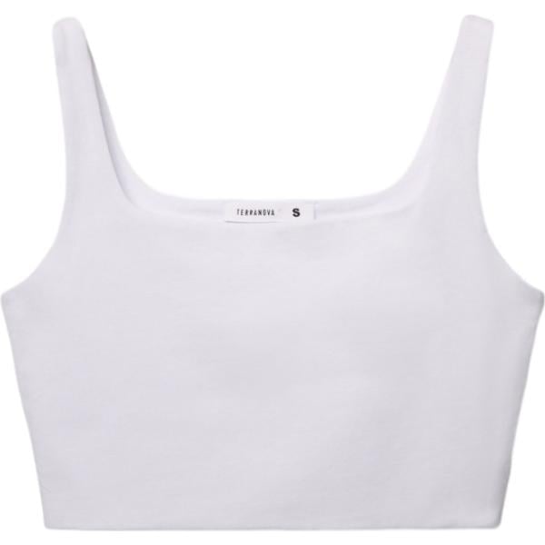 Canottiera da donna in bianco avorio con spalline corto a vita alta in cotone