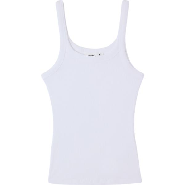Canottiera da donna in bianco neve girocollo senza maniche in cotone