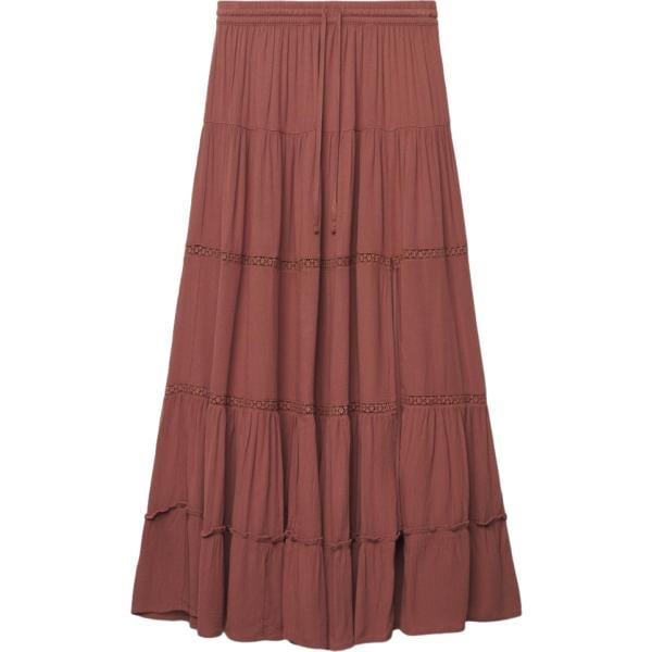 Gonna lunga da donna in marrone chiaro con ruches lungo in viscosa