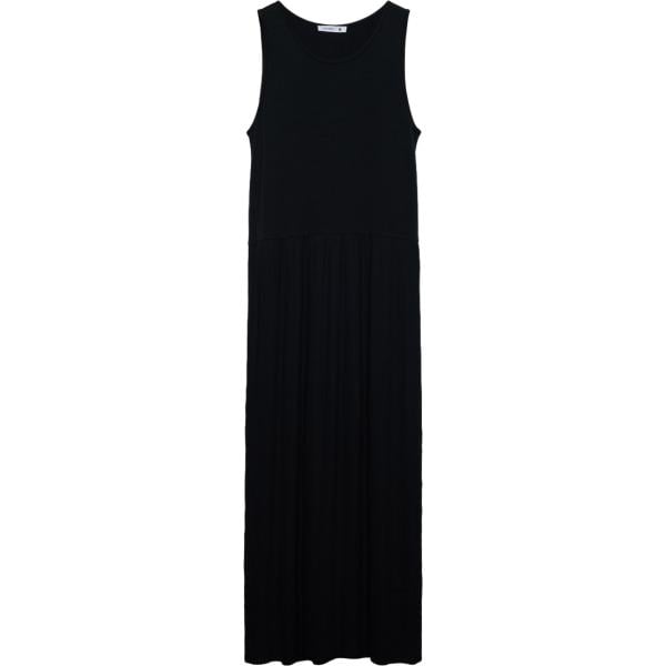 Vestito lungo da donna in nero pece plissè girocollo lungo senza maniche in viscosa