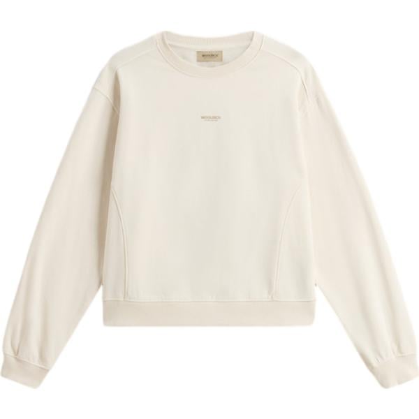 Felpa da donna in bianco avorio girocollo in cotone