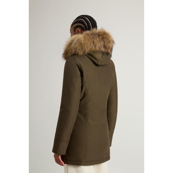 Parka da donna in verde oliva collo con cappuccio con zip