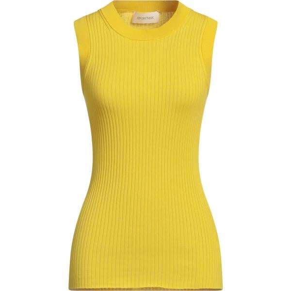 Pullover da donna in giallo scuro girocollo senza maniche in cotone