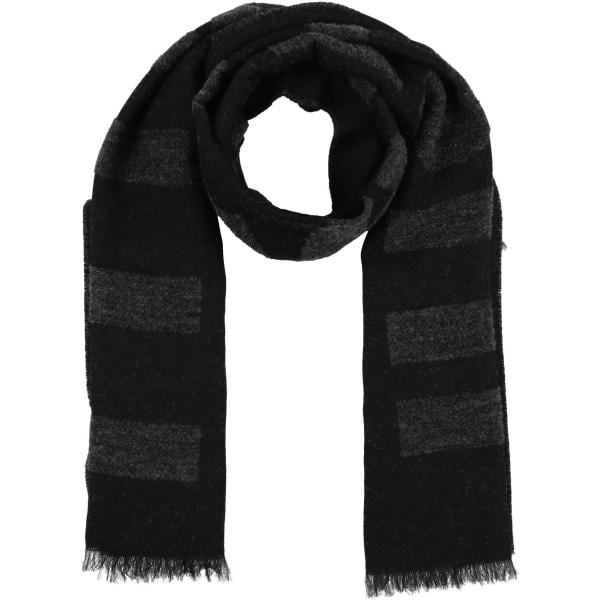 Sciarpa da donna in blu scuro con stampe con frange in lana