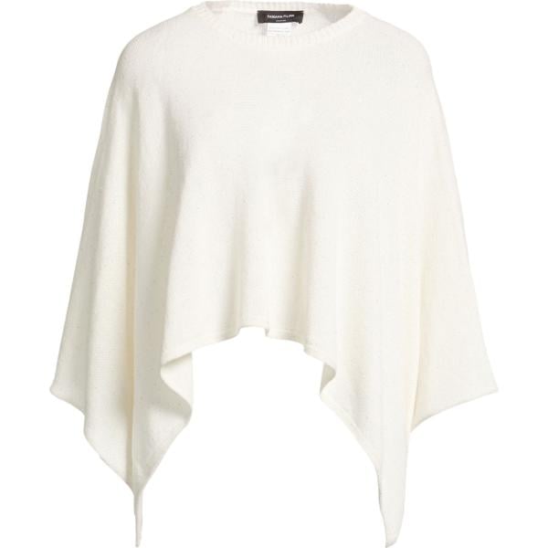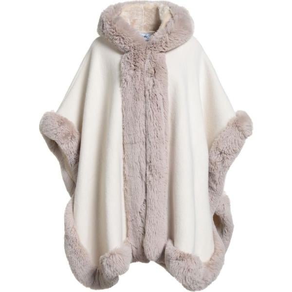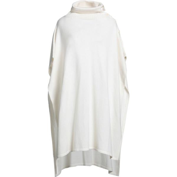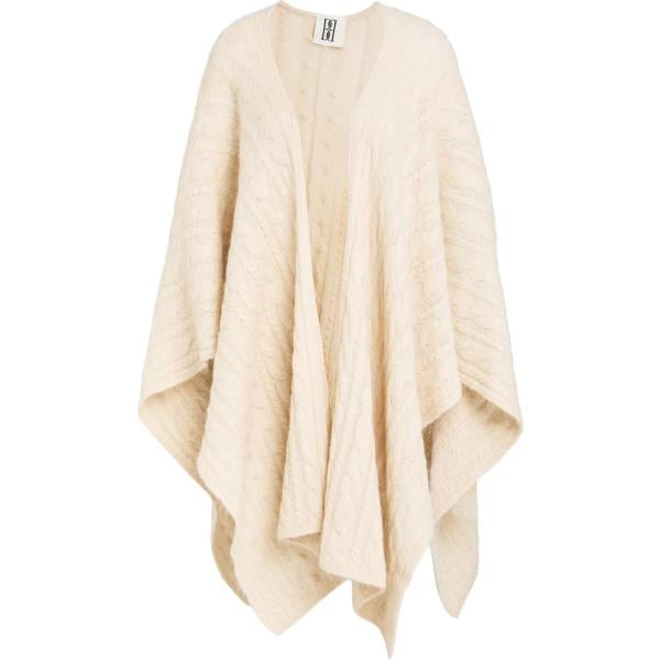 Mantella da donna in bianco avorio lavorato a maglia con scollo in lana