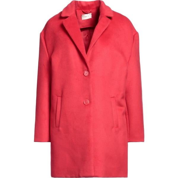 Cappotto da donna in rosso classico collo con revers monopetto a maniche lunghe