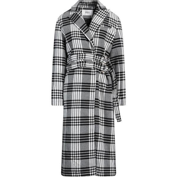 Cappotto da donna in bianco neve principe di galles collo con revers senza tasche a maniche lunghe con cintura in lana