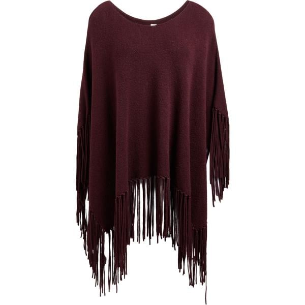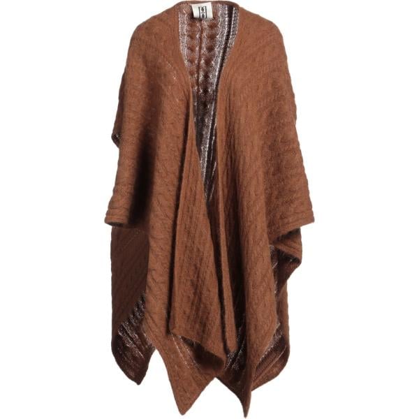 Mantella da donna in marrone scuro lavorato a maglia con scollo in lana