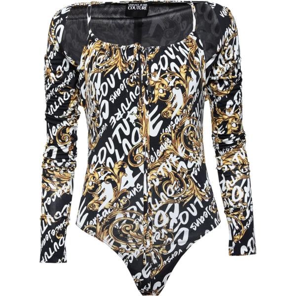 Corpo da donna in nero pece con stampe con scollo a maniche lunghe in viscosa