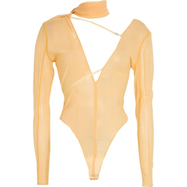 Corpo da donna in arancione chiaro con scollo senza tasche a maniche lunghe in metallo