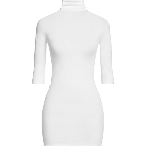Maglione da donna in bianco neve effetto laminato collo alto senza maniche