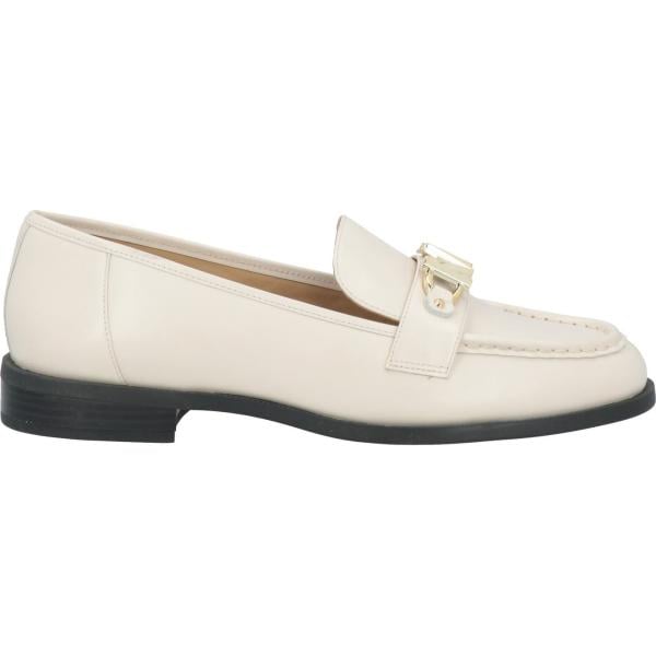 Mocassini da donna in bianco avorio senza tacco a punta tonda in metallo