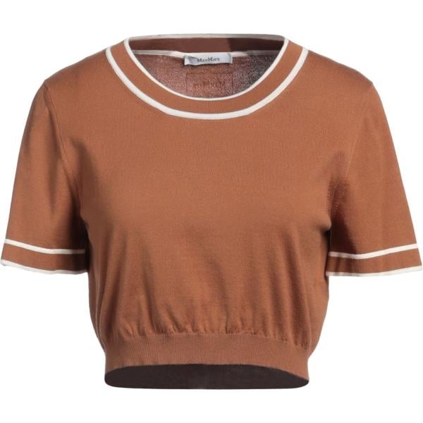 Pullover da donna in marrone chiaro girocollo a maniche corte in viscosa