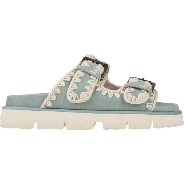 Sandali in pelle da donna in bianco neve effetto scamosciato senza tacco a punta tonda con fibbia in pelle