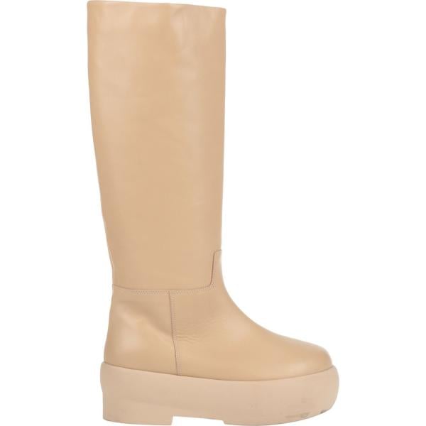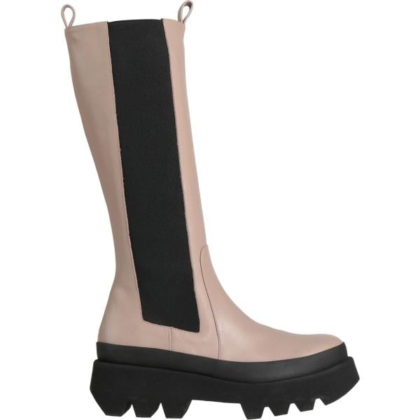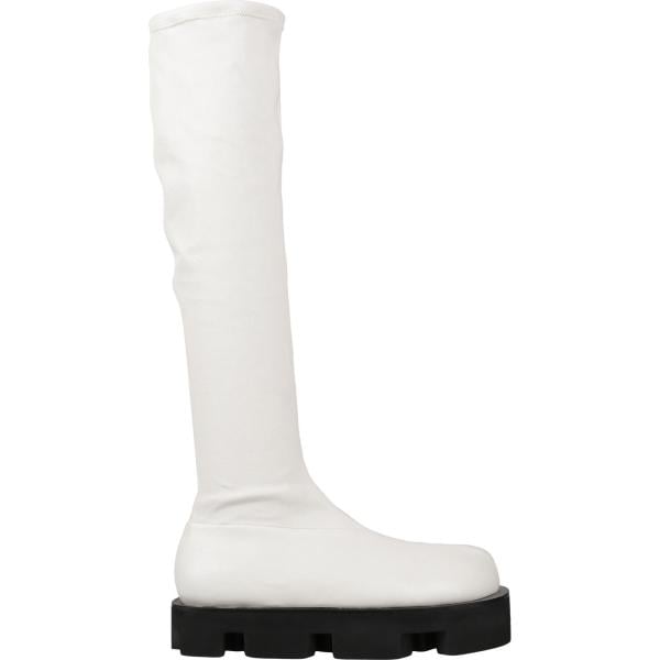 Stivali da donna in bianco avorio platform a punta tonda in pelle
